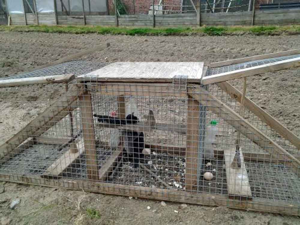 I fælden sad to krager, hvoraf den ene blev brugt som lokkefugl. Den ulovlige lokkekrage sad i den midterste del af fælden, der ikke er indrettet til fangst, men kun til at lokke med.