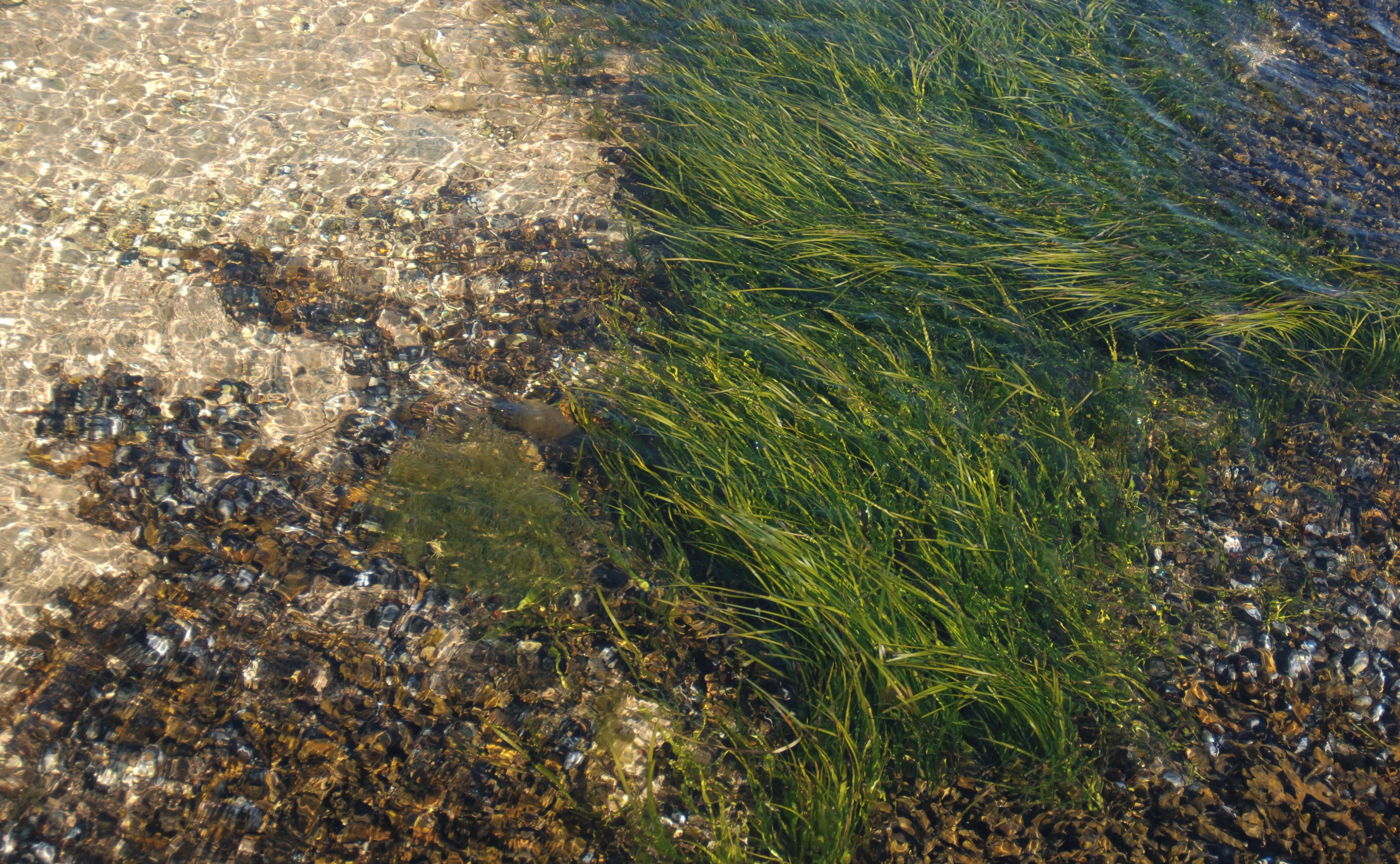 Ålegræsplanten er ligesom planter på land med til at binde og lagre CO2 og yder dermed sit bidrag i klimakampen. Den stedsegrønne plante er også i stand til at optage og binde kvælstof, så næringsstofferne ikke gøder de alger, der med masseopblomstring og senere død giver iltsvind og fiskedød. Foto: Jan Skriver.