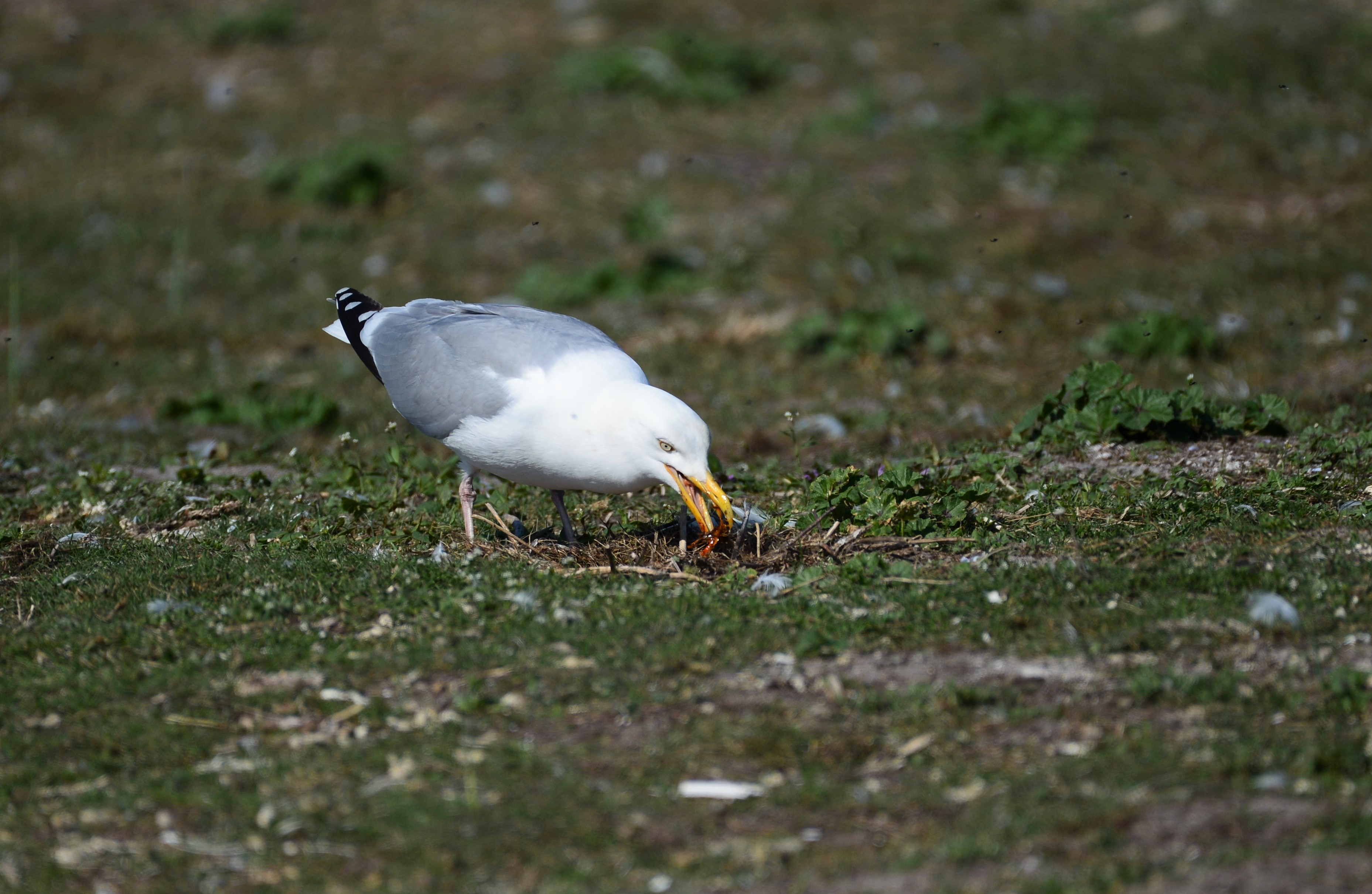 Sølvmåge æder artsfælles æg. Foto: Jan Skriver.