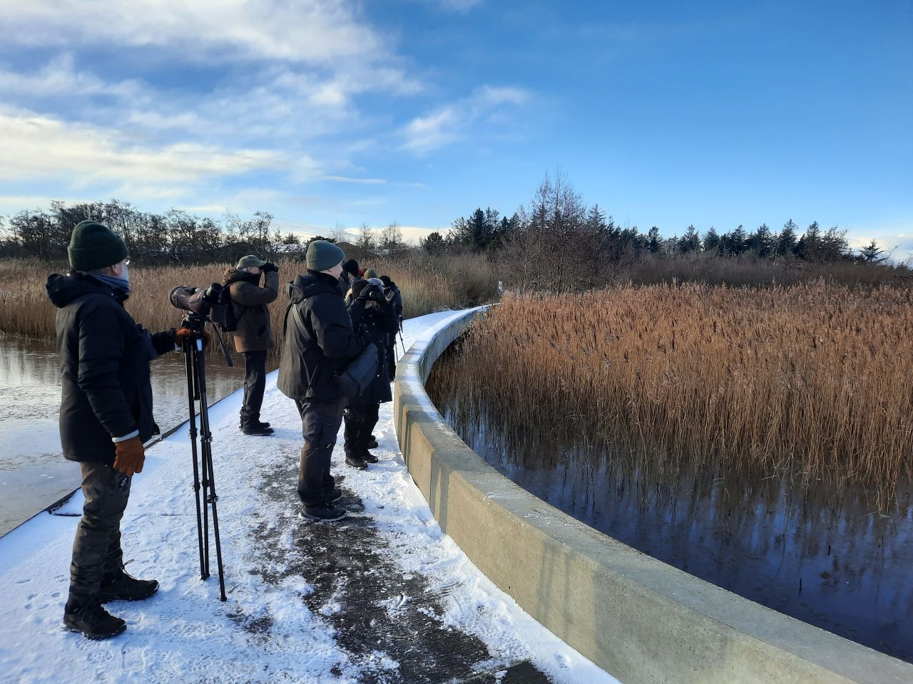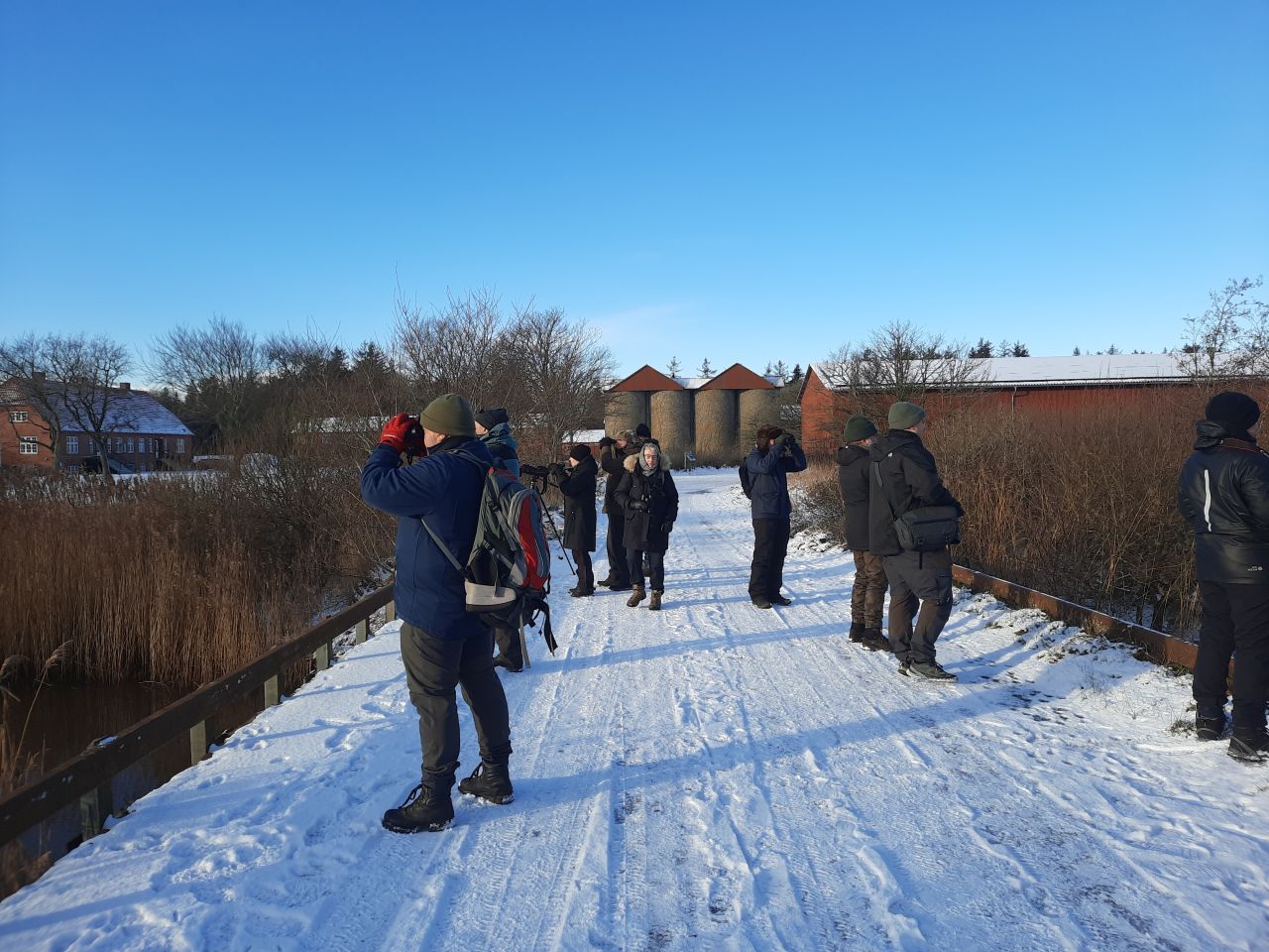 10 personer var mødt op ved Filsø en lørdag eftermiddag i det flotteste vintervejr: højt solskin, let frost og næsten vindstille. Søen var tilfrossen med kun lidt åbent vand, hvor der var bevægelse i vandet. Det var så også der, det var muligt at se nogle fugle fint tæt på.