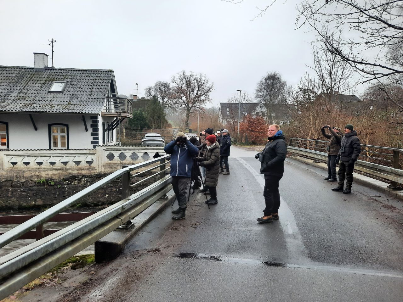 Vi kørte i samlet flok mod første destination, som var ved Vejle å, hvor den løber forbi Haraldskær fabrik.